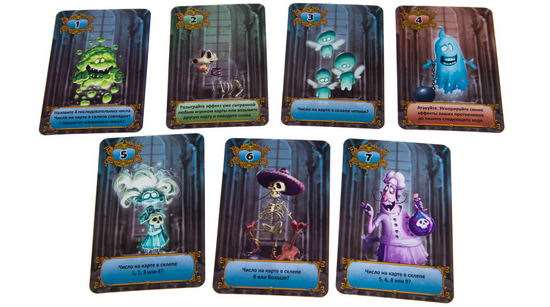 В начале партии все игроки получают две произвольные карты. Одну они выбирают и кладут перед собой рубашкой вверх – это их склеп с привидением. Главная задача участников – догадаться, карты с какими номерами скрываются перед другими игроками.