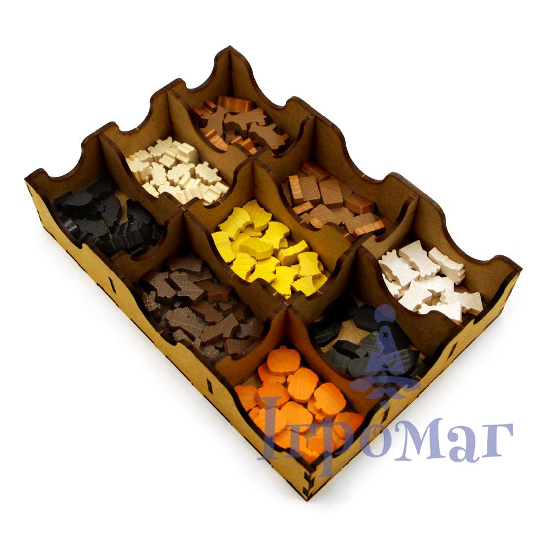 Агрикола: Органайзер – превосходный аксессуар для невероятно популярной настольной игры «Агрикола». С его помощью вы сможете хранить все разнообразие разноцветных фишечек, жетонов, миплов и тайлов в отдельных отсеках. А значит больше никаких сортировок карт перед игрой, тарелочек для разных жетонов и монотонного отделения овечек от коров. С использованием этого органайзера, чтобы приготовиться к партии достаточно просто открыть коробку и достать планшеты игроков. И помните, правильное, удобное и продуманное хранение компонентов ваших настольных игр практически сводит на нет всю рутину подготовки к партии и, таким образом, позволяет получать лишь положительные эмоции и полностью погружаться в атмосферу игры.