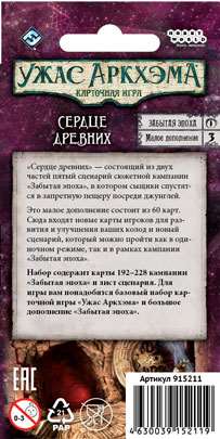 Ужас Аркхэма. Карточная игра: Забытая эпоха. Сердце древних» (Arkham Horror: The Card Game – Heart of the Elders: Mythos Pack) – это третье мини-дополнение кампании