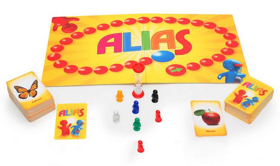 Настольная игра «Алиас или Скажи иначе» - это прежде всего командная игра на время, количество игроков не ограничено. Как правило, чем больше народу – тем веселее (но при желании в Алиас можно играть и небольшой компанией – хоть в два человека). Каждая команда выбирает себе одну фишку и совершает ей ходы по мере развития игры. Игроки стараются угадать как можно больше слов. Каждое слово – очко для команды, чем больше очков, тем больше ходов по игровому полю, тем ближе к победе! Но помните, время ограничено.