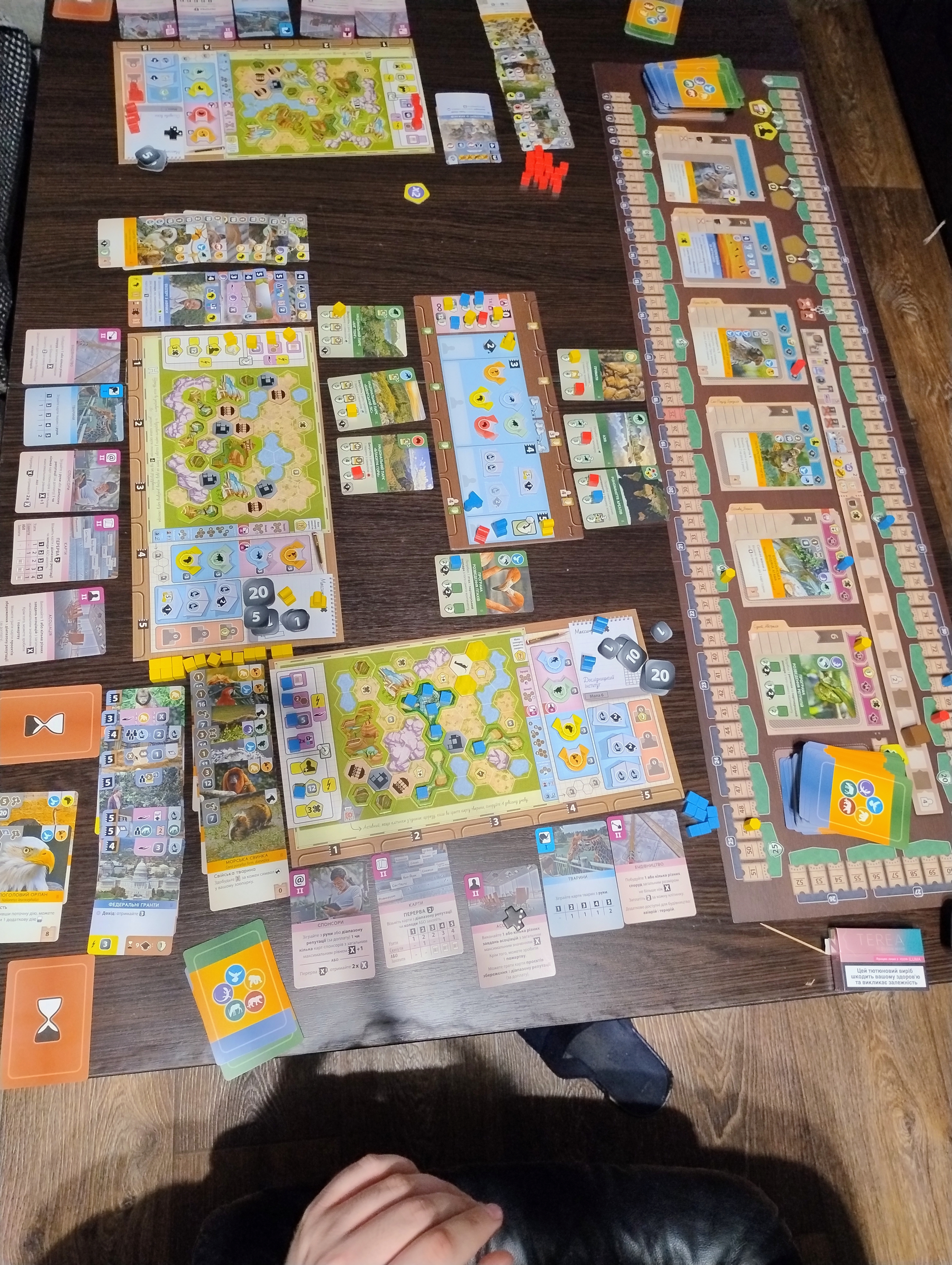 - розчарували поля зоопарків для гравців і картки тварин. Бо вони тоненькі, такі наче гра коштує 400 грн. Типу, там тонесенький картон. Гнеться і пачкається на ізі. За таку ціну хотілося б чогось покраще. У нас до цього була гра крила, і ось вона коштує дешевше, а якість в рази приємніше.