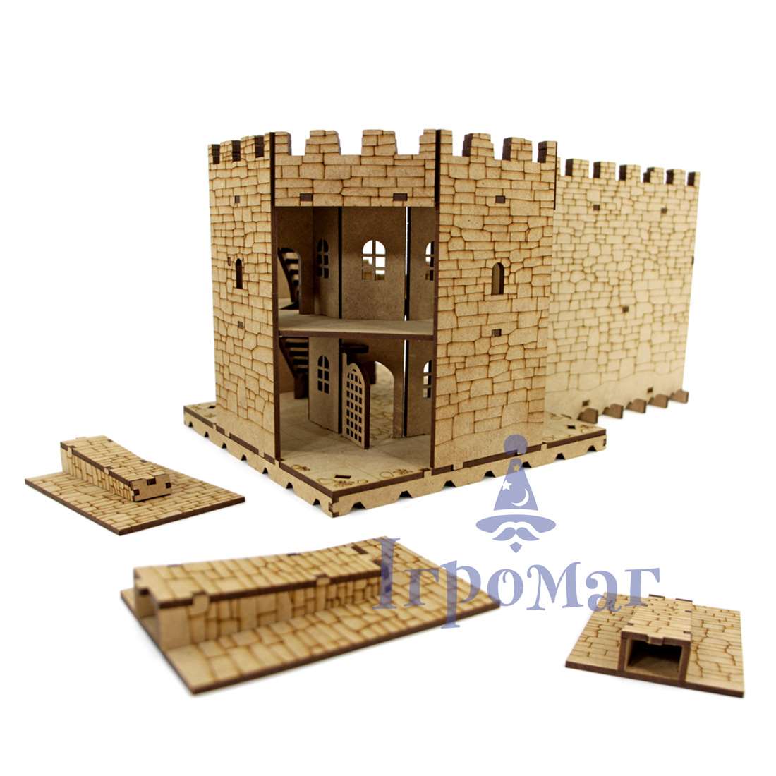 Бастион – это высокое каменное укрепление, разновидность форта, характеризующееся выступающим углом укрепленной стены. Как правило, бастионы могли выдерживать тяжелые осады благодаря прекрасно обученным солдатам. Большая деревянная модель бастиона представляет из себя элемент крепости, который вы можете использовать в средневековых ролевых настольных играх. Стены модели снимаются, чтобы предоставить удобный доступ внутрь здания, где вы найдете лестницы, а также казармы с двухъярусными кроватями.