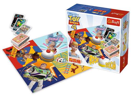 Бум-Бум. История Игрушек 4 (Boom-Boom. Disney Toy Story 4) – это версия настольной игры «Бум-Бум», посвященная четвертой серии анимационного фильма «История игрушек». В неё вы встретитесь с четырьмя главными героями этой части: шерифом Вуди, пастушкой Бо Пип, Вилкинсом и космонавтом Базом. Как и в мультфильме вам нужно будет помочь игрушкам собраться вместе. Для этого игрокам следует сложить сеты из определенных карт.