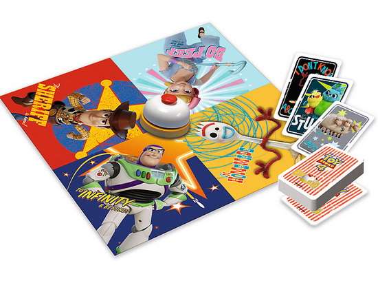 Бум-Бум. История Игрушек 4 (Boom-Boom. Disney Toy Story 4) – игра динамичная и веселая. Все действия в ней игроками осуществляются одновременно. А как только один из них первым получает на руки сет из нужных карт он может звонить в самый настоящий звоночек!