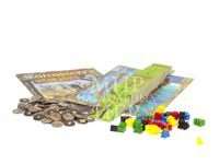 Отличия от оригинального Каркассона. Многие игровые элементы Золотой лихорадки покажутся знакомыми поклонникам оригинальной игры. Однако теперь в игре появилась возможность зарабатывать дополнительные очки добывая золото, представленное в виде расположенных в горах жетонов. Для этого вместо размещения одного из своих ковбоев вы должны сначала разбить на горе палатку старателя, а затем уже добывать самородки, пока гора не будет завершена и кто-то заберет все оставшиеся самородки. Кроме этого на дорогах появились локомотивы, которые удваивают ценность пути, а фермеры в прериях приносят победные очки за индейские поселения и табуны диких мустангов.Содержание настольной игры Carcassonne: Gold Rush (Каркассон: Золотая лихорадка):