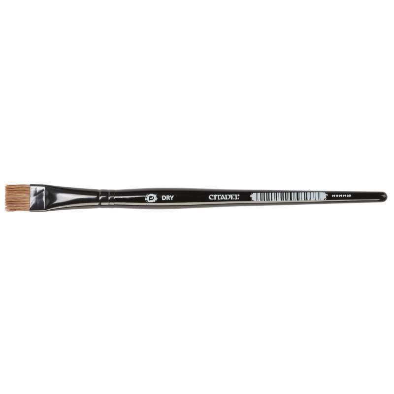 Высококачественная кисть Citadel для раскраски пластиковых миниатюр. Эта большая кисть сочетает в себе светлую воловью и синтетическую смесь щетинок для жесткости и долговечности. Плоский профиль обеспечивает стойкое покрытие на рельефных участках - и это идеально подходит для сухой покраски.