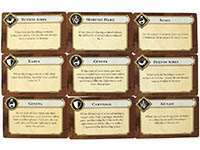 Неймовірно якісні компоненти, чудова кольорова гама (не звичні червоний-зелений-синій-т.п., а помаранчевий, бірюзовий, оливковий та якийсь криваво-червоний, чи щось таке). Щодо протекторів: по заявці виробника (Fantazy Flight Games) потрібно по пачці 41x63MM та 57x89MM. Насправді на більші карти "тугенько" налізли наявні у мене в залишках протектори 56x87mm (від MayDay Games), але їх не вистачило і більше половини карт упакував в 57.5 х 88 мм (від Ігромага).