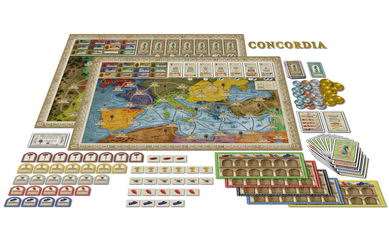 «Конкордия» — это экономическая стратегия, в которой игроки возглавят династии и будут бороться за влияние на берегах Средиземного моря. Величественная Римская империя переживает время расцвета на всем море от запада до востока. Прокладывайте торговые маршруты, развивайте территории и зарабатывайте милость богов. Игра является максимально неконфликтной, но победителем станет только один! Тип: экономическая стратегия, драфт, сбор сетов, колодостроительная
