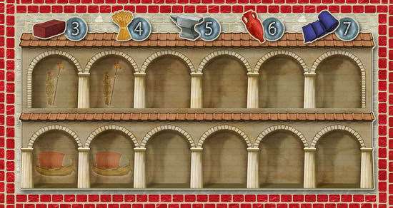 - Купец. Получите 3 сестерции из банка и заключите соглашение: покупайте в банке товары или продавайте собственные.