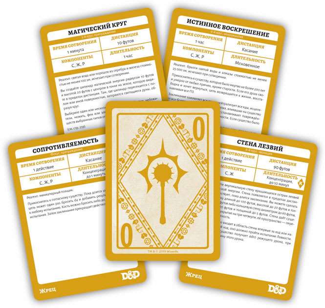 Гейм Мастерам также удобно пользоваться колодой заклинаний для Жреца во время партии. Карты позволяют, к примеру, быстро выбрать произвольное заклинание, когда на молящегося Жреца снисходит божественное откровение.