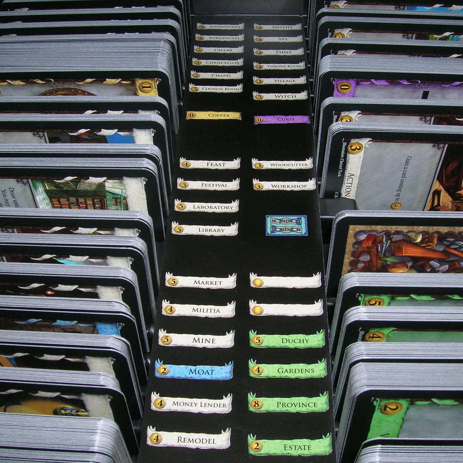 - 252 карты королевства (по 10 карт «Библиотека», «Ведьма», «Вор», «Деревня», «Зал совета», «Искатель приключений», «Канцлер», «Кузница», «Лаборатория», «Лесоруб», «Мастерская», «Ополчение», «Погреба», «Банкет», «Рынок», «Реконструкция» , «Ров», «Ростовщик», «Рудник», «Тронный зал», «Часовня», «Чиновник», «Шпион», «Ярмарка» и 12 карт «Сады»)