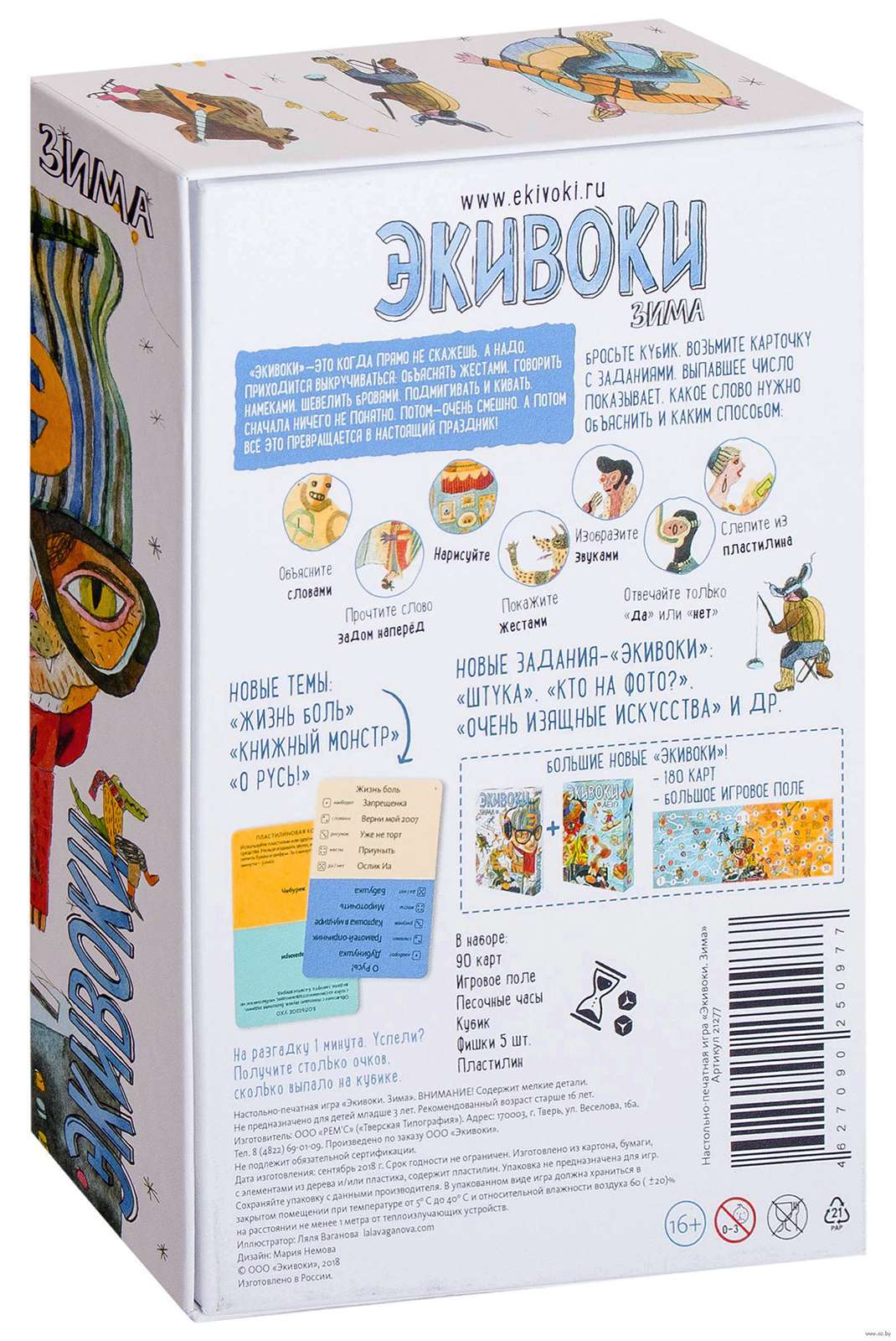 Экивоки: Зима – это настольная игра на объяснение слов. Помните старый добрый Крокодил? Экивоки в сотни раз веселее и активней! Благодаря огромному разнообразию карт заданий, тем, способов объяснения и соревновательной пробежке по игровому полю эта настольная игра зарядит любую вечеринку!
