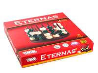 Eternas (Этернас) – замечательная головоломка для двоих игроков. Первое, что приходит на ум при виде этой превосходной игры – это объемные «крестики-нолики». У каждого игрока в наличии будут шарики одного из двух цветов. Игровое поле представляет из себя круглую деревянную подставку с шестами. Игроки по очереди должны надевать свои шарики на шесты, пока не выстроят линию из четырех шариков в любом направлении. Будь то вертикаль, горизонталь или диагональ.