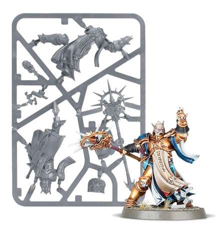- Пластиковый литник с деталями для сборки миниатюры рыцаря-заклинателя из Грозорождённых Вечных.