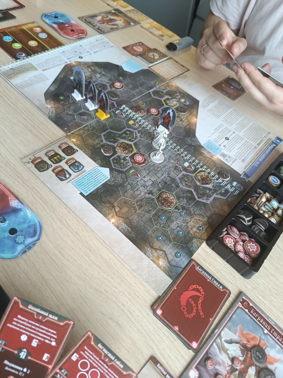 Це моя перша гра такого жанру. Зіграли 4 сценарії і мені дуже сподобалося!! Можливо ще посприяло те, що мені подобається фентезі та різна фантастика, та добре розвинута фантазія))). Сподобалися всі компоненти, фігурки, картки, фішки, те як обережно наче дитину за руку проводять по перших сценаріях та знайомлять з механіками гри і сюжетом, як поступово додають градус складності та напруженості в грі. Після того як згідно інструкції в коробці з грою розсортувати всі компоненти по пакетиках та навчитися розкладати згідно сценарія компоненти, то підготовка до гри займає досить мало часу. Починали гру в 3 героя..та нажаль 4 сценарій змушені були проходити в 2 героя (одного героя ми втрати, не зміг долучитися до гри через форс-мажорні сімейні обставини))), та дякувати грі вона дає можливість підлаштовуватися під такі життєві повороти. Тож загалом для мене гра на 9.5 з 10...