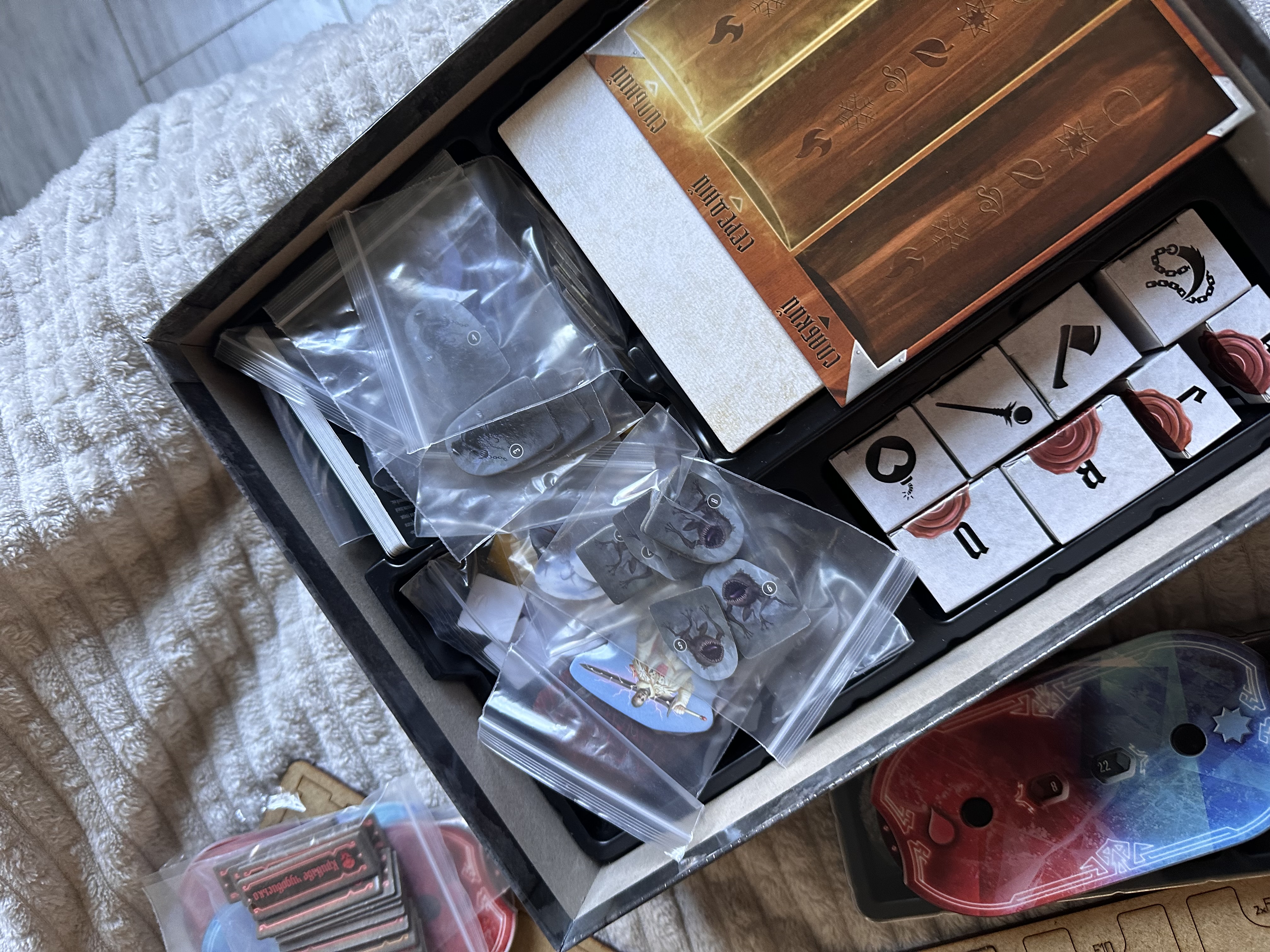 Легко збирається. До коробки пасує як "рідний". Всі карти, токени і інши ігрові елементи на своїх місцях.