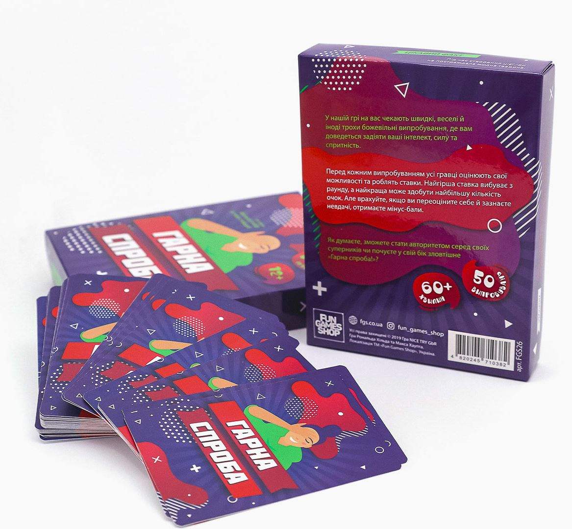 Комплектация настольной игры «Хорошая Попытка (Гарна Спроба) (UA).»: - 50 карт
