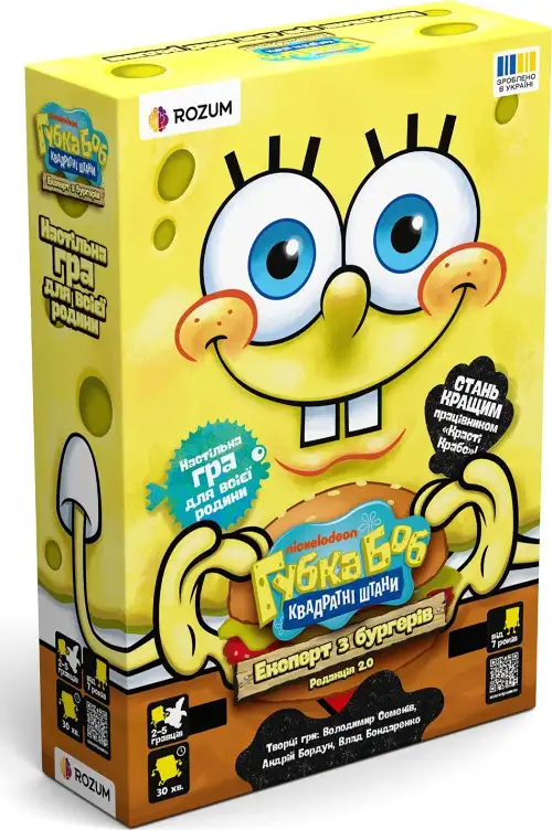 Син швидко розібрався з правилами й тепер грає з друзями без нашої допомоги. Яскрава, кумедна, добре підходить для тих, хто любить Губку Боба. Але для нас трохи простувата, тож довго в неї не пограєш. Думаю, що підійде навіть молодшим за 7 років — якщо дитина знає цифри до десяти, вміє рахувати, можна сміливо брати!