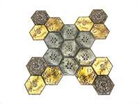 Содержание настольной игры Hyperborea:– 42 шестигранника игрового поля (30 промежуточных, 6 центральных и 6 шестигранников «родины»)
