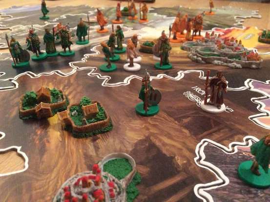 При передвижении в Горы 1+ кланов владелец кланов обязан сбросить 1 карту действия или удалить один из своих кланов из тех, что идут в Горы.
