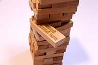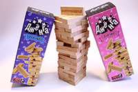 Дженга Romantic – логическое продолжение эволюционного развития невероятно популярной «Дженги». Суть игры остается неизменной: необходимо всего лишь вынуть брусочек с середины башни и водрузить его на верх, да так, чтоб не обрушить шаткую конструкцию. Но все усложняется заданиями на пятнадцати брусочках, которые спрятаны среди других элементов башни. Вытягиваешь такой, и выполняешь задание. Не можешь выполнить? Ну что же, тяни штрафной. Как и в обычной «Дженге», здесь проигрывает тот игрок, который обрушит башню, ему то и предстоит выстроить новую.
