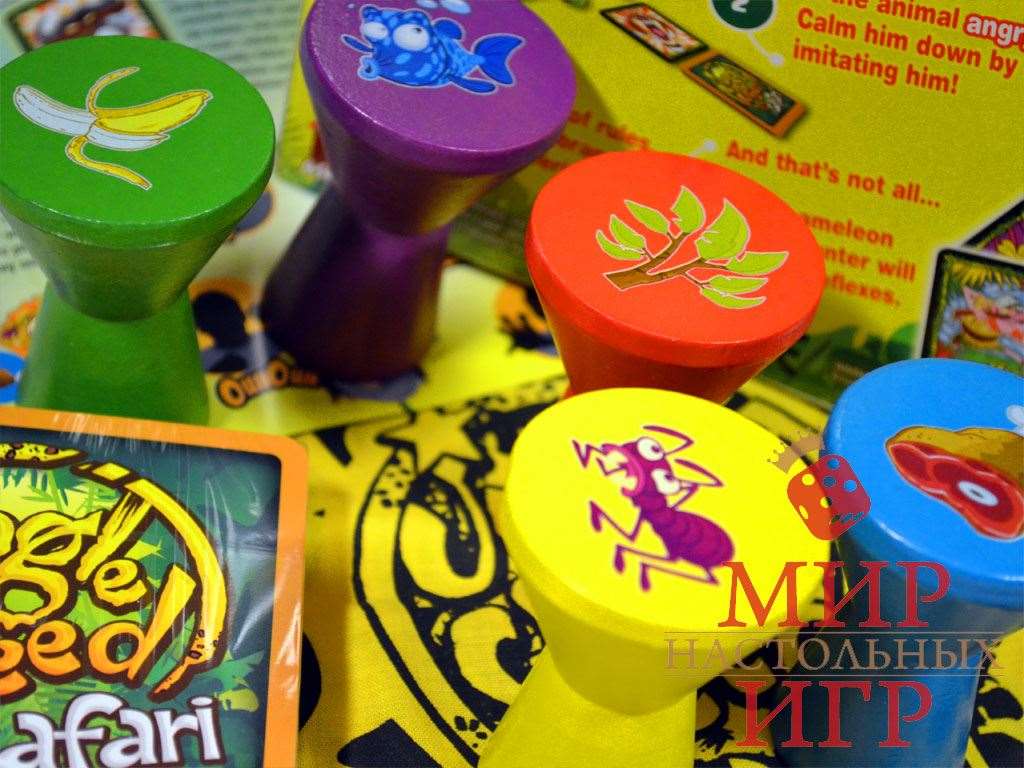 В настольной игре Jungle Speed Safari (Сафари в Диких Джунглях) участники отправятся на самое веселое и необычное сафари в своей жизни. Открывая карты вы должны будете выполнять различные действия, пытаясь получить как можно больше животных в свою коллекцию. В зависимости от типа карт от вас может потребоваться схватить один из пяти тотемов, изобразить разъяренное животное или накрыть рукой колоду, защитив своих животных от охотника!