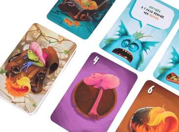 Каждый монстр готов подружиться с вами и отдать свои сокровища при определенном условии. Оно указано на самой карте существа. К примеру, для этого на столе должны оказаться только карты грибов или монстрик хочет обязательно получить семь перьев феникса. Как только условие выполняется, карта монстра сбрасывается, а его место занимает новый обитатель колоды существ.