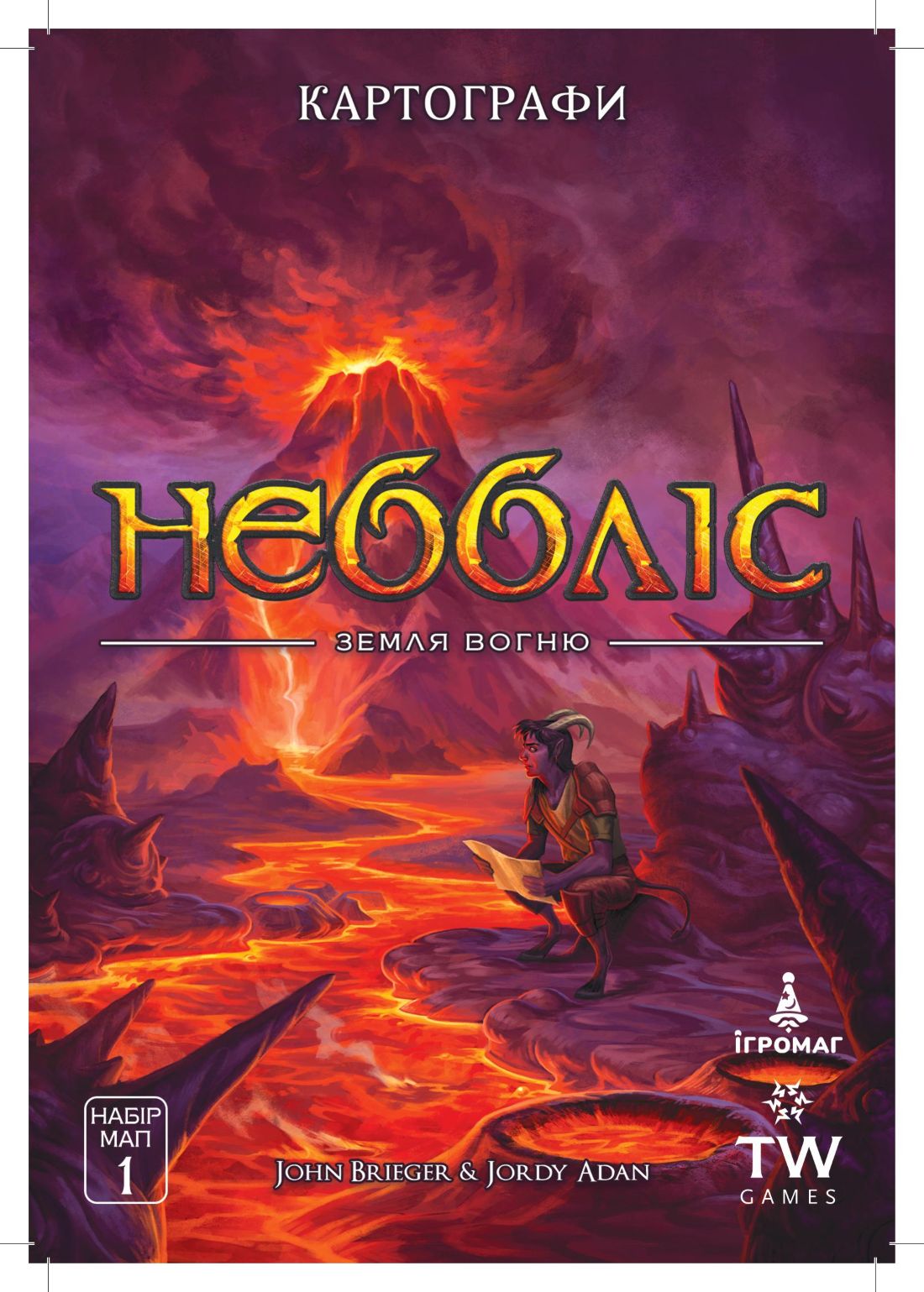Небблис. Земля огня – это первый набор карт для настольной игры Картографы, который содержит 75 листов двусторонних карт и 3 карты вулканов, которые добавляются в колоду исследований. Когда карты вулканов открываются, игроки заполняют разрушенные клетки на своих листах карт, обозначая вред, который вулкан наносит местности.