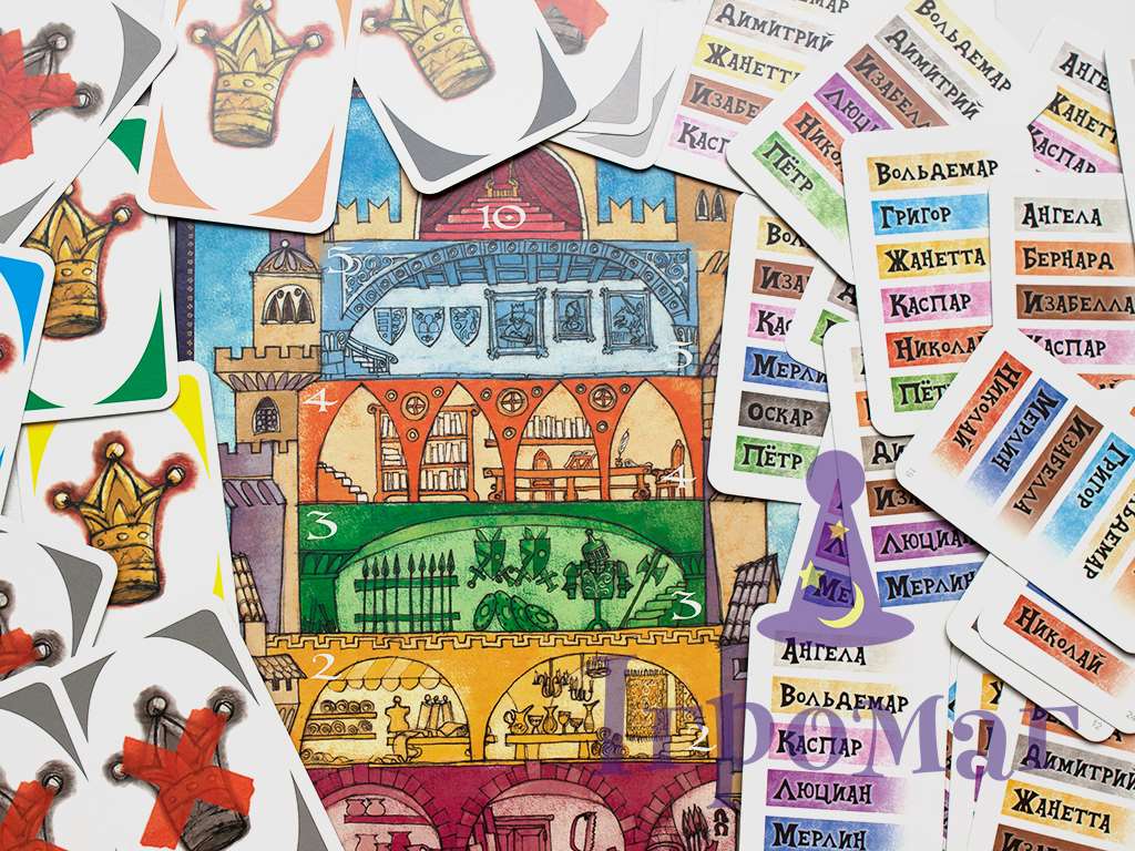 Тип: Быстрая и веселая, Выборы царяВ настой игре Царь горы участники выступают в роли промоутеров, выставляя своих претендентов на трон сказочного королевства. Каждый раунд игроки получают список различных придворных, которым должны помочь как можно выше подняться по дворцовой иерархии и, в лучшем случае, занять трон. Но стоит быть осторожным: если голосование по выбору нового монарха провалится, он выбывает из предвыборной гонки и не принесет победных очков. Выбор царя происходит общим тайным голосованием и, в случае успеха, раунд завершается, а игроки получают победные очки в зависимости от того, насколько высоко поднялись указанные в их карточках заданий претенденты.