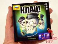 В карточной настольной игре “Клац” (Nox) участники собирают наборы из специальных карт, разыгрывая их по особым правилам. Каждая карточка характеризуется цветом одного из забавных скелетов и числовым значением. Разыгрывая карту вы можете как добавить ее в ряд, так и положить поверх любой другой совпадающей по цвету. При этом, если в ряду уже есть такая карта, то обе стопки объединяются в одну. Также стоит всегда следить за тем, чтобы в вашем ряду было представлено все три цвета, иначе в конце раунда вы победных очков не получите.Подготовка к игре почти не занимает времени. Достаточно тщательно перетасовать колоду и раздать каждому игроку по три карты. Свою руку вы держите в тайне от остальных игроков. Все участники ходят по очереди, начиная с самого младшего игрока. В свой ход вы должны разыграть одну из своих карт и сразу добрать из колоды еще одну так, чтобы у вас в руках всегда было три карты. Разыграть карту вы можете выложив ее как перед собой, так и перед любым оппонентом. При этом вы можете как расширить любой ряд, так и закрыть любую другую карту того же цвета, увеличив или уменьшив ее значение. Например, вы можете подкинуть оппоненту синюю единицу сверху девятки или наоборот, положить себе зеленую семерку поверх двойки. Если при этом в ряду одного игрока появляются две карты с одинаковым числом и цветом, то они тут же складываются в одну стопку, тем самым уменьшая длину его ряда.