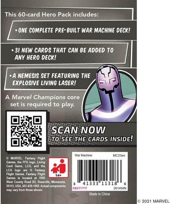 Комплектация настольной игры «Marvel Champions: The Card Game – War Machine Hero Pack»: