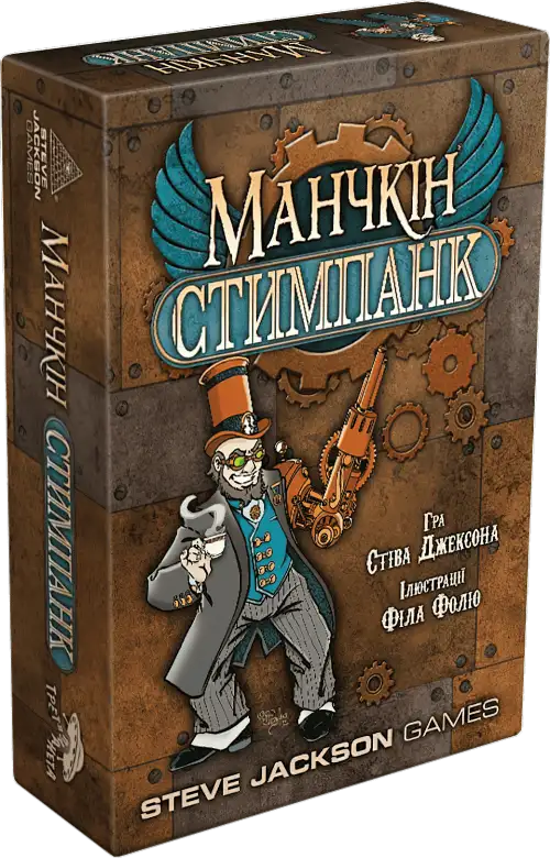 Манчкин Стимпанк (Munchkin Steampunk) — это оригинальная и самостоятельная версия культовой настольной игры, которая сейчас в своем жанре является одной из самых популярных в мире. Набор, как и в оригинальной настолке, состоит из 168 игровых карточек, кубика и правил игры, которые в свою очередь, остались почти без изменений. По-прежнему игроки берут на себя роли классических ролевых героев, таких как воины, маги, ловкачи и т.д., и отправляются в путешествие через лабиринты, которые просто кишат монстрами, роботами и мутантами, а также проклятиями, сокровищами и всевозможными загадками. К тому же игра пронизана глубоким юмором и саркастическим подходом к стандартным клише, теперь уже, стимпанк жанра.