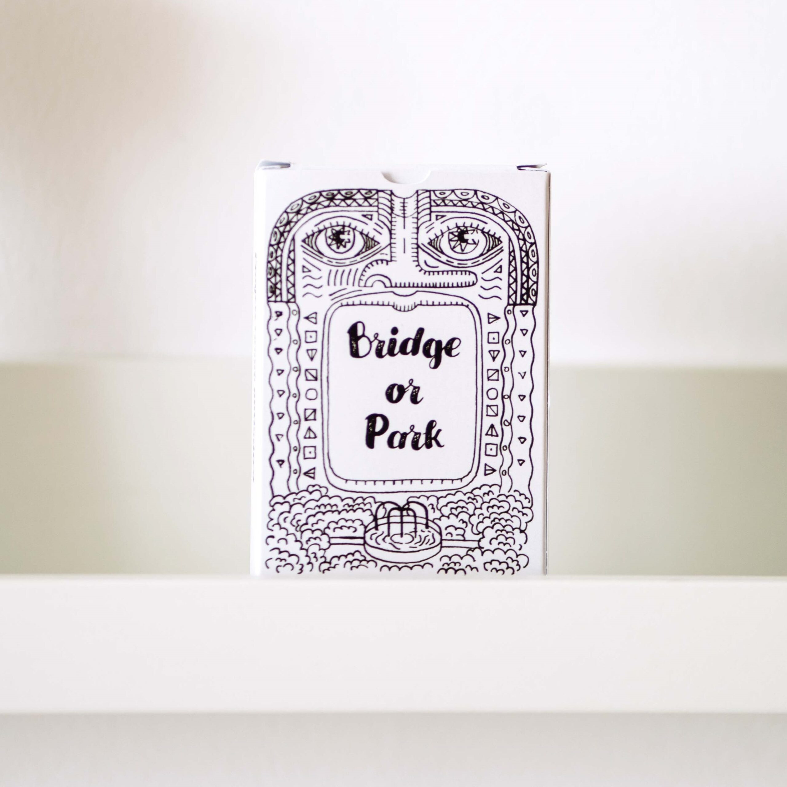В коробке игры Bridge or park (Мост или парк) вы найдете колоду из 46 карт, на каждой из которых напечатаны три пары английских слов. Игроки по очереди становятся ведущими: они зачитывают одну из пар, а все остальные должны выбрать, какой из двух вариантов для них более приемлем.