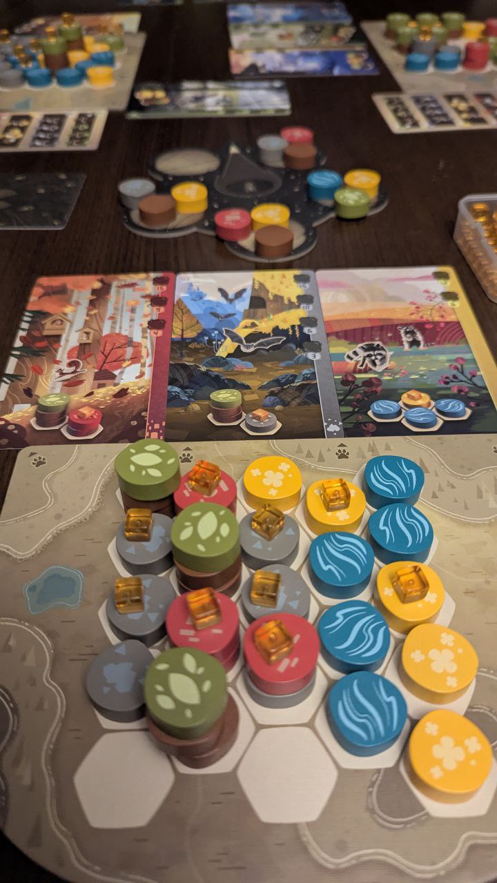 Дуже крутий сімейний абстракт. Правила досить прості, але в процесі гри завжди є над чим подумати і попрораховувати. Прикольні тайли місцевості. Дуже симпатичні карточки з тваринами. Єдиний помічений поки що мінус - інколи карточки не підходять нікому з гравців, і вони просто лежать без оновлень; було б непогано, якби була якась механіка оновлення завдань, якщо ніхто не взяв жодного завдання за одне коло.