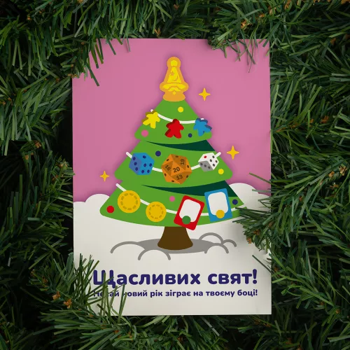 Обратная сторона открытки — практичное и душевное пространство для особых слов. Здесь удобно написать новогодние пожелания, указать кому адресован подарок и от кого, превратив открытку в искреннюю память. Она станет прекрасным бонусом к настольной игре или праздничному набору, добавляя подарку эмоций и завершенности.