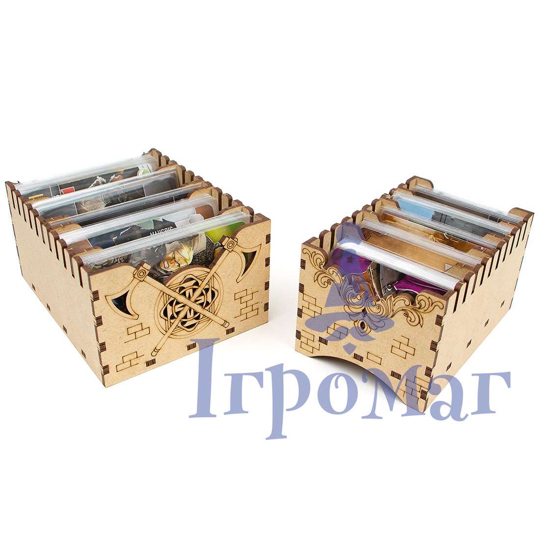 + + Треї для карток розраховані під протектори + мають розділювачі