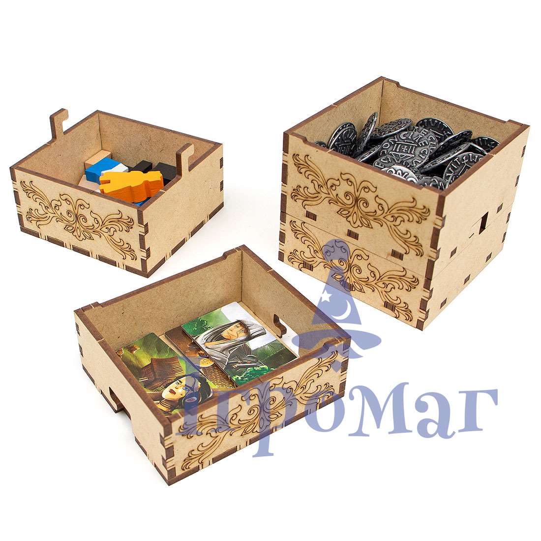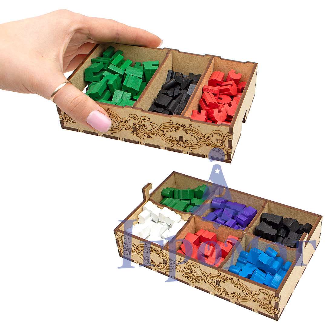 Перед заказом органайзера, обратите внимание на его размеры, и удостоверьтесь, что он поместится в Вашу коробку с игрой.