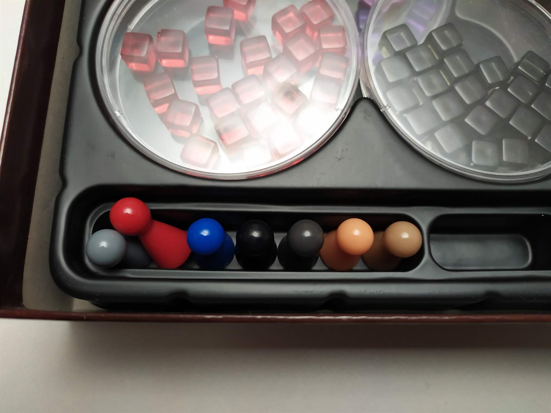 - кусок пластикового органайзера, в який не влазять всі фішки гравців і карти, якщо вони в протекторах (тому половину органайзера доведеться відрізати)