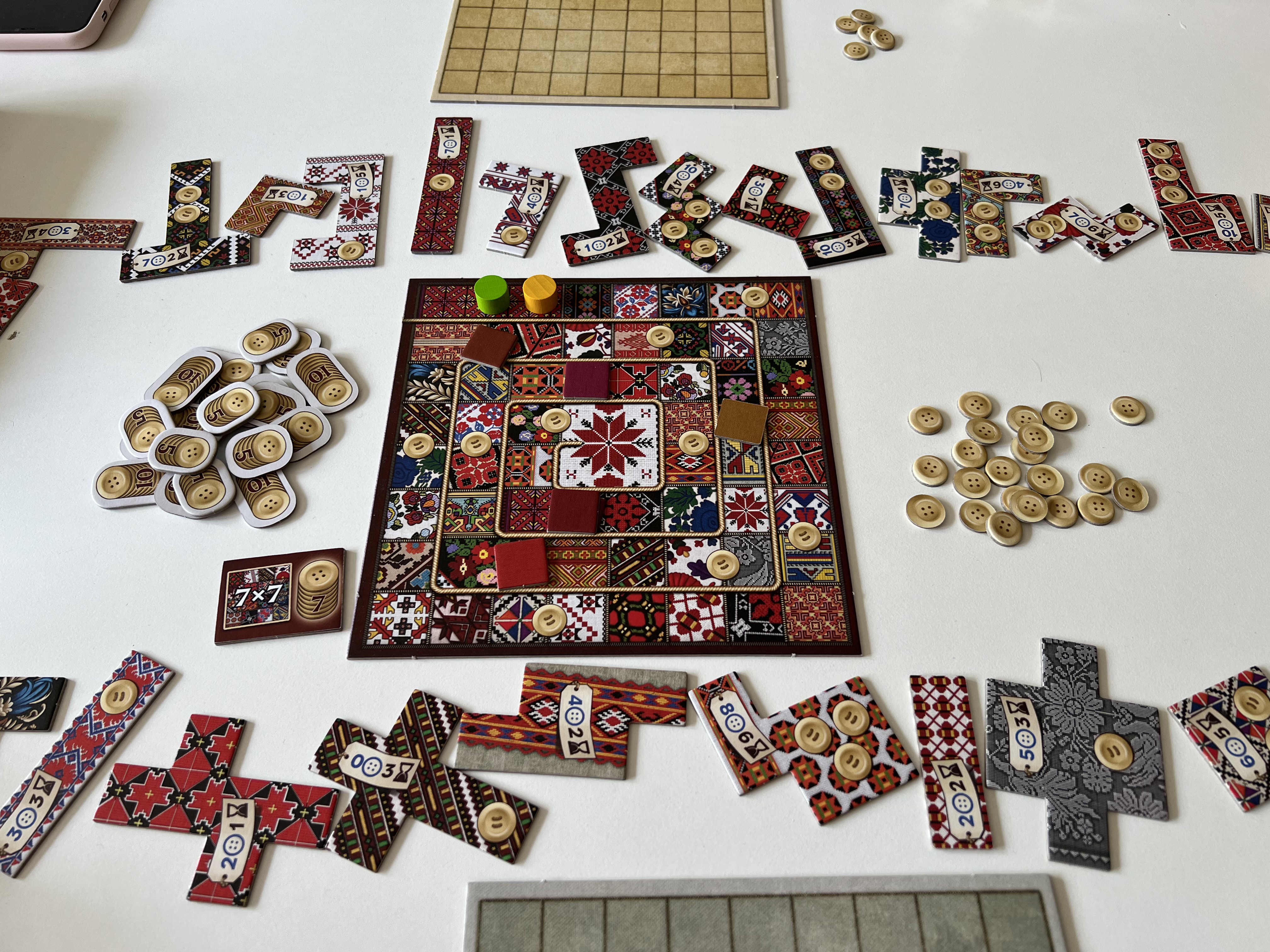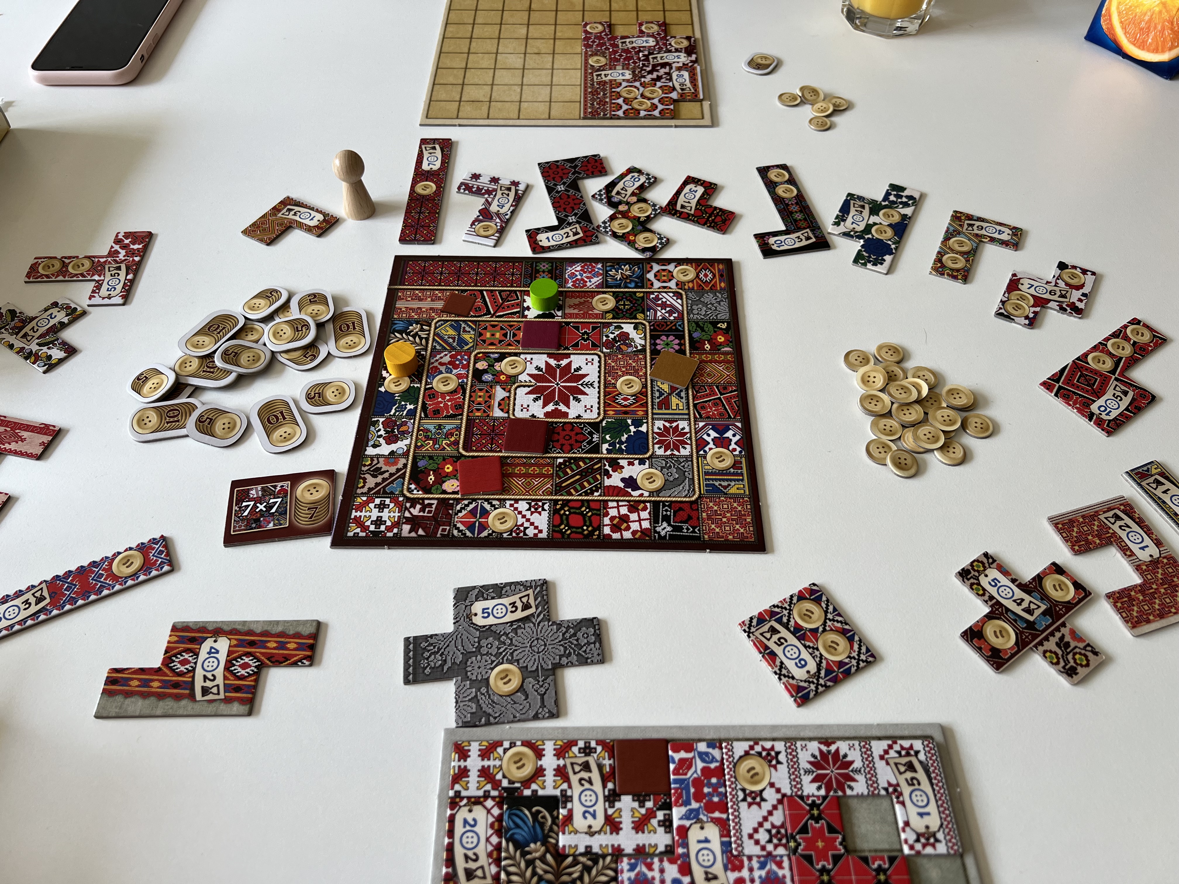 Цікава головоломка, не тільки про вдале розміщення клаптиків на своєму полі, а і про менеджмент ґудзиків, часу. Можна як намагатися бути попереду і збирати бонусні міні клаптики, щоб затикати "діри", так і користуватися відставанням, щоб планувати по декілька ходів поспіль.