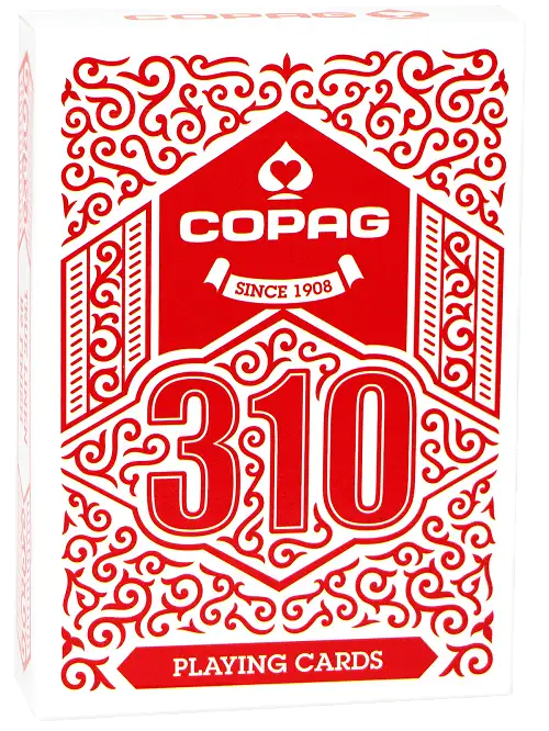 Колода Copag 310 состоит из классических 52 карт, двух полностью одинаковых карт джокеров, одной специальной карты с двойной рубашкой, а также белой карты. Оформление колоды выдержано в классическом спокойном стиле. Карты представлены в двух цветовых вариантах: синем и красном.