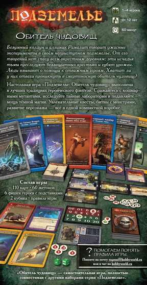 Подземелье: Обитель Чудовищ» это следующая настольная карточная игра в серии «Dungeoneer». Несмотря на небольшую коробку в которой находится стопка карт, горсть жетонов и пара кубиков, эта игра предлагает целый спектр героических приключений. Ведь на протяжении партии, игрокам предстоит сражаться с монстрами, исследовать подземные локации, находить ценные артефакты и сокровища, и получать очки славы.