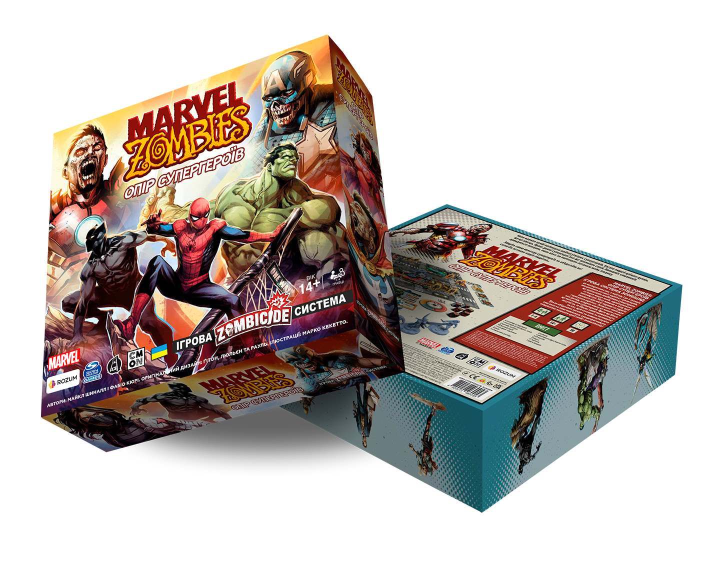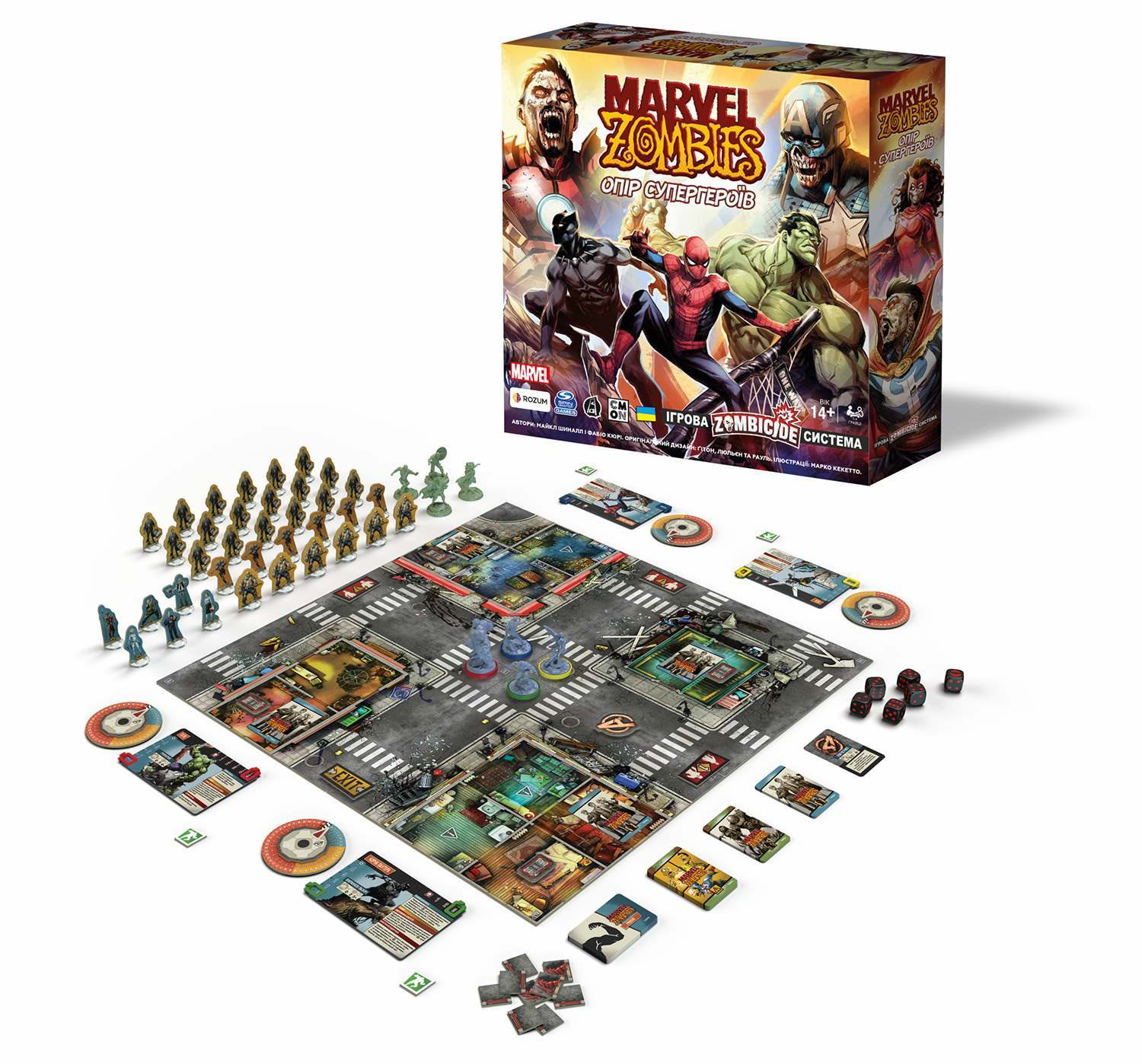Marvel Zombies: Сопротивление Супергероев – это настольная кооперативная игра, в которой от 1 до 4 игроков перевоплощаются в уцелевших Мстителей, среди которых есть Черная Пантера, Зимний Солдат, Человек-Паук, Визий, Оса и Галка. Она создана на основе игровой системы «Зомбицид», где герои должны противостоять всем видам зомби и новообращенным зомбированным супергероям (Капитан Америка, Доктор Стрэндж, Алая Ведьма и Железный Человек), используя карточки с умениями. Основная цель игры – выполнить целые миссии, преодолеть врагов и спасти уцелевших людей. Уничтожение зомби дает игрокам опыт, который увеличивает их уровень могущества, однако стоит помнить — чем мощнее супергерой, тем больше зомби будут охотиться на него.