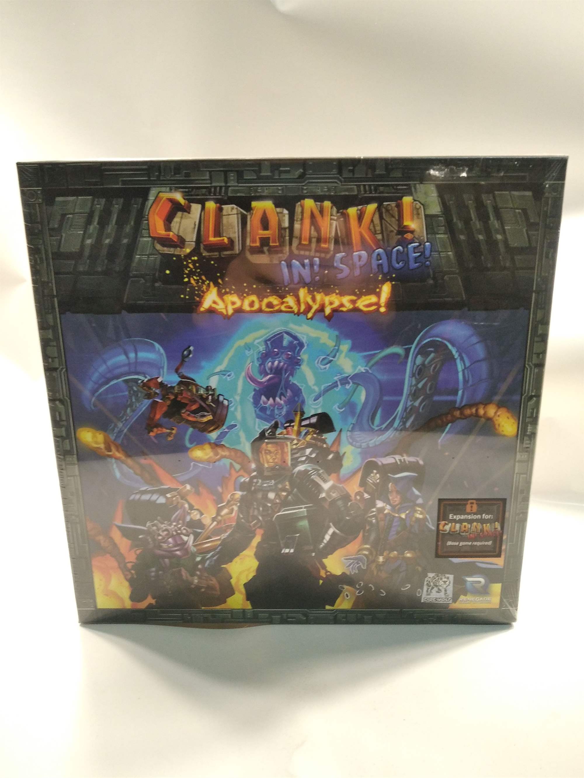 В дополнении Clank! In! Space!: Apocalypse! герои продолжают бороться против могущественного киборга Лорда Эрадикуса. В этот раз он решил избавиться от всего живого и устроить апокалипсис в галактике. И если не сработает один… то в его рукаве спрятано ещё несколько самых различных путей достижения цели. А значит, самое время начинать операцию по спасению галактики! Однако вселенной не повезло, ведь защитникам важнее золото…Тип: дополнение к настольной игре Clank! In Space