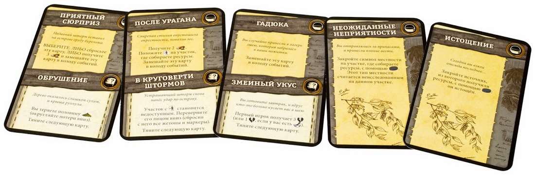 Элемент выживания в «Робинзоне» очень ярко выражен, и многие действия игрока могут привести к печальным последствиям. И в том то заключается громадная изюминка игры – это густая, насыщенная атмосфера, которой фактически пронизана каждая карточка, каждый бросок кубика. В процессе игры вы буквально переживаете день за днем вместе с вашим персонажем.