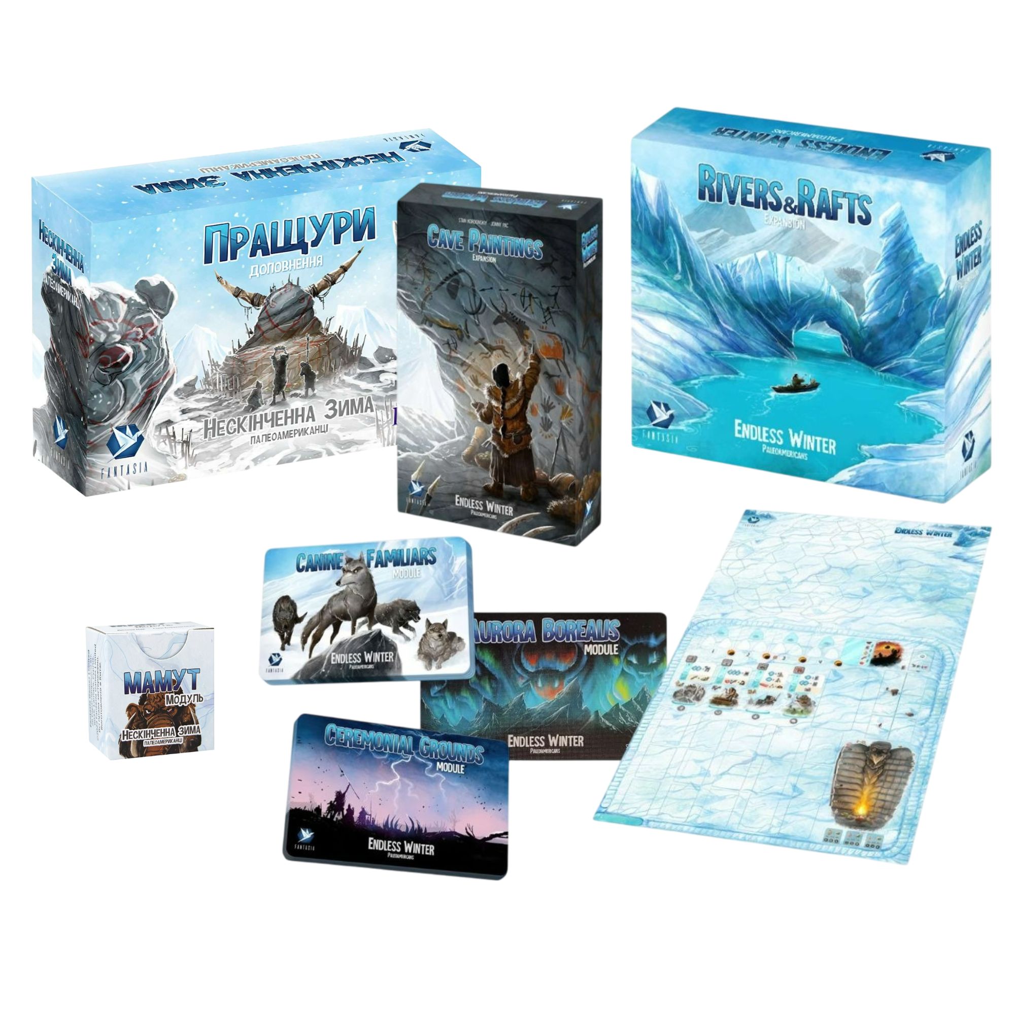 В этом комплекте собраны все дополнения к игре «Вечная зима: Палеоамериканцы», чтобы вы могли получить максимально разнообразный и комфортный игровой опыт.