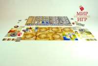 В начале партии каждый игрок выбирает себе одну из доступных цивилизаций. В базовой коробке вас ожидают Египтяне, Русские, Римляне, Американцы, Германцы и Китайцы. Нация определяет исходный политический строй и особую способность. Затем игрок размещает свою столицу на личной стартовой области игрового поля и получает стартовые ресурсы. Таким образом, одновременно достигаются разнообразие и баланс в начальной расстановке сил. Отдельно несколько слов нужно сказать о карте, где разворачиваются все события. Она имеет модульную структуру и собирается из 16 областей (4 на 4 больших тайла), в свою очередь каждый из тайлов разбит на 16 малых областей. Следовательно, при игре вчетвером мы получаем 256 областей для исследования и поле, которое почти для каждой игры будет гарантированно уникальным. Кроме карты в комплекте с игрой идет очень удобное дополнительное утилитарное рыночное поле, позволяющее понятным способом на интуитивном уровне организовать огромное количество игровых элементов.