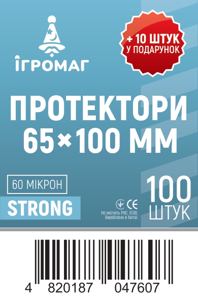 В комплекте 110 протекторов для карт размера 65 х 100 мм.