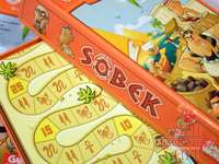 В настольной игре Sobek (Собек) участники выступают в роли торговцев, расположивших свои палатки на небольшом рынке рядом с новым храмом Собека на берегу Нила. Каждый день быстроходные лодки подвозят на причалы различные товары. Ваша задача проста: купить подешевле, чтобы потом продать подороже. Чем больше товаров одного вида вы соберете, тем выгоднее будет сделка. Однако в погоне за прибылью вам придется немного приступить закон. Как следствие, самый коррумпированный игрок будет в результате оштрафован.Подготовка к игре почти не занимает времени. Выберите из колоды стартовые товары, которые можно легко отличить по рубашкам. Каждый игрок получает по две стартовые карты, маркеру коррупции и фишке, которую помещает на начальное деление шкалы подсчета очков. Из двенадцати жетонов событий закрыто выбираются пять случайных. Все карты товаров и персонажей перетасовываются и девять из них выкладываются на причалы вдоль игрового поля. Обратите внимание на то, что товары выкладываются лицевой стороной вверх, а персонажи, которых легко отличить по цвету рубашки, размещаются закрыто. Таким образом, игроки не знают какого именно персонажа получат, пока не выберут его.
