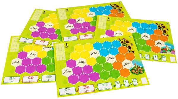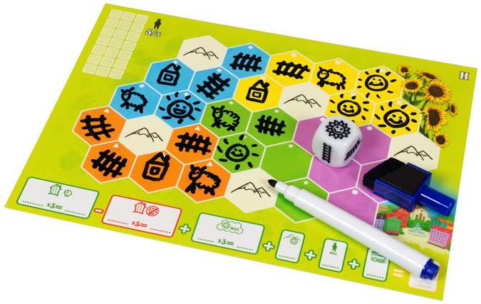 Игрокам предстоит самим решать, где именно на их участке будут расти подсолнухи, располагаться домики и овечки, а где пройдет железнодорожное полотно. Конечно же, зарисовывать они смогут только то, что поступит в их пользование. Определят они это с помощью броска кубика, грани которого украшают изображения цветов, домиков, овечек или же кусочков железной дороги.