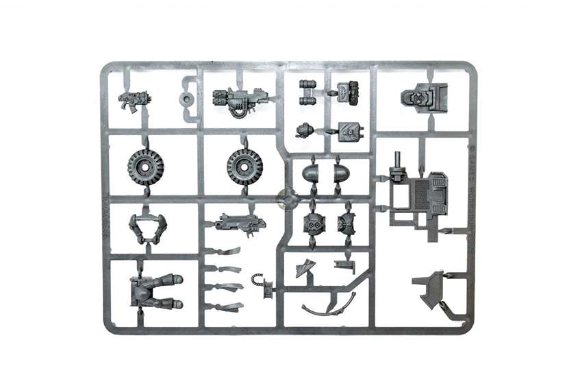 Комплектация набора "Space Marines Attack Bike": – детали для сборки миниатюры Боевого мотоцикла Космодесанта